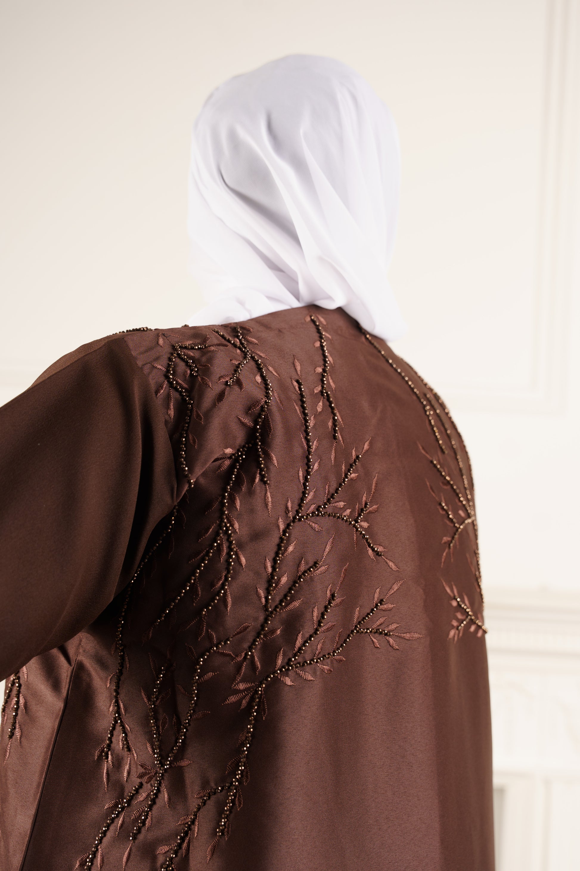 Tahira Chocolate Brown Embroidered Abaya