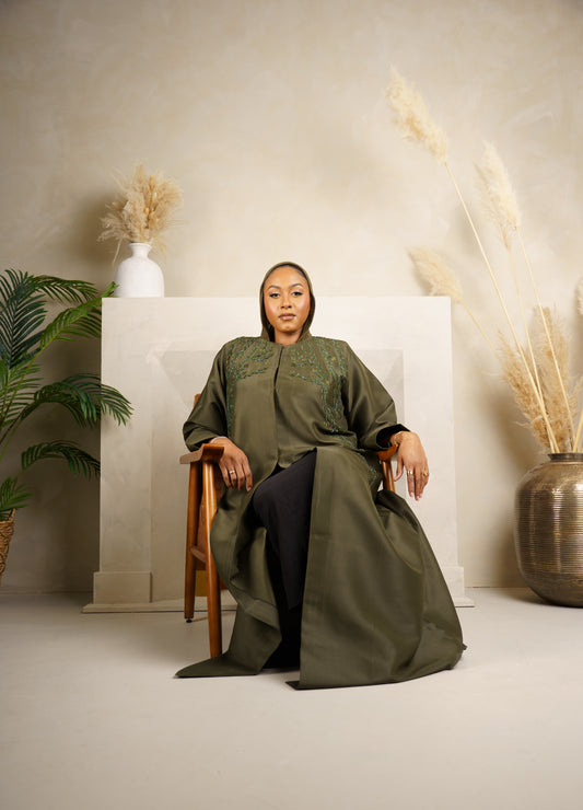 Every stitch, every cut, and every silhouette is crafted with precision and artistry. From flowing abayas to elegant scarves, our pieces are designed to drape beautifully and complement every woman.